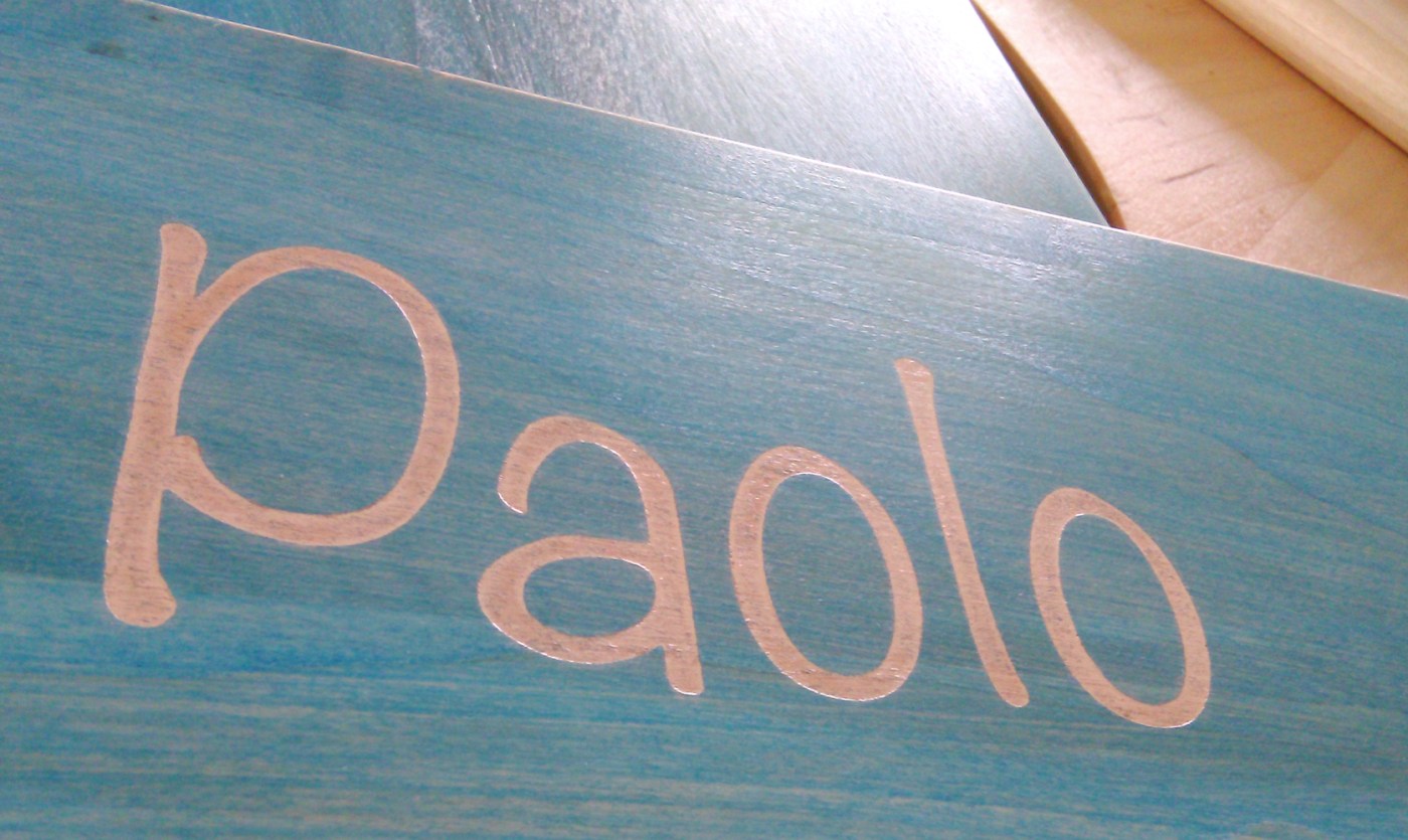 Possiamo personalizzare Girandolo con il nome della bimba o del bimbo che lo ricevono, lo incidiamo a laser e poi lo dipingiamo a smalto, con il colore che vuoi 🙂