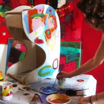 Ho progettato Girandolo per mia figlia Sofia, per rispondere a un’esigenza della mia famiglia. Allora abitavo in una casa piccolissima e avevo un seggiolone classico. Dato l’ingombro dell’oggetto, cominciai a pensare che sarebbe stato interessante utilizzarlo in più momenti della giornata e per funzioni diverse. Con i bambini piccoli si ha sempre l’esigenza di dare loro qualcosa con cui giocare e mia figlia non faceva che prendere i giochi dalla sua camera e portarli in cucina, per non restare da sola. Così ho pensato di costruirle un oggetto “d’uso comune” tutto suo, utile durante i pasti per mangiare, ma anche per disegnare, sedersi, dondolarsi…